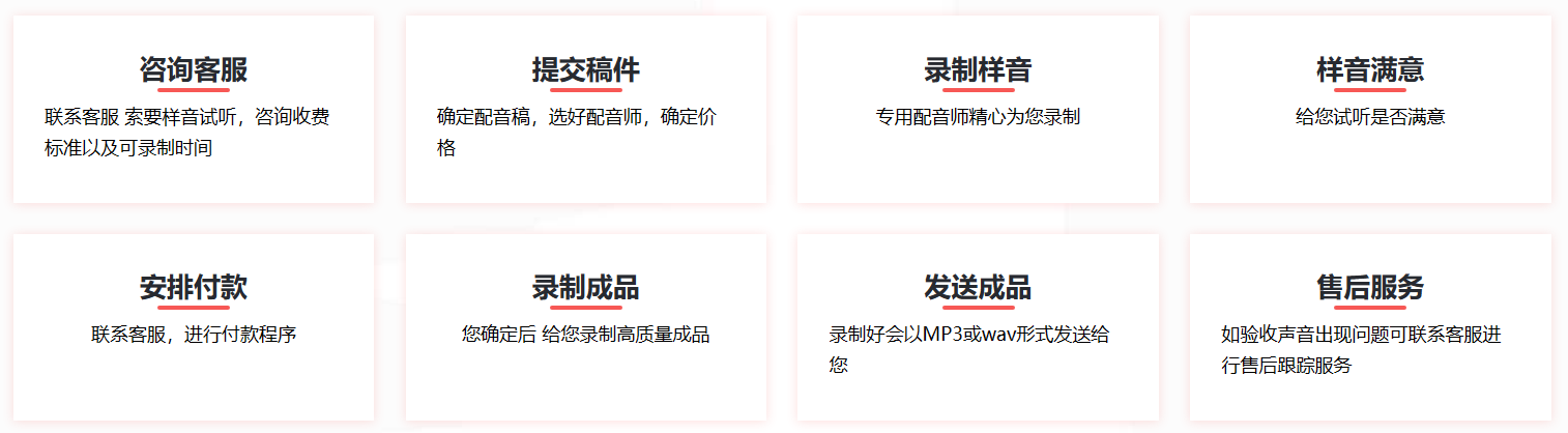 相對(duì)于同行,因?yàn)榻灰琢看?、合作順暢、英語、俄語可試音、價(jià)格合理等因素,四海配音可以做到6-24或36小時(shí)交付,大大的提升了客戶滿意度。